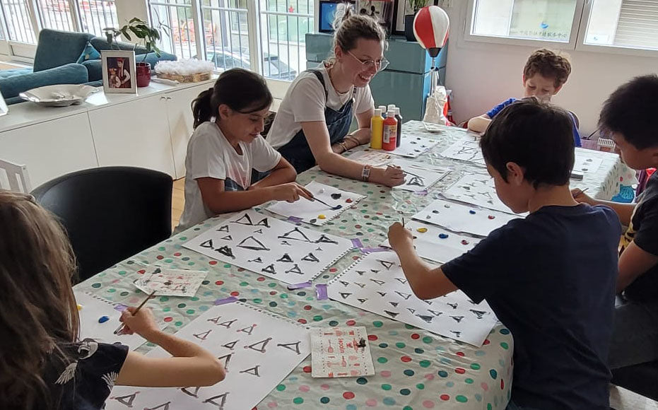 "I recommend this activity for children who are always very fond of visual arts and painting in particular. Wendy first explains to them the main principles of colors (primaries, secondary, mixtures, etc.), then the children paint their work with Wendy's directions. Calm activity that children enjoy. As many different works as there are children!"
